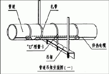 4)直線平行安裝時(shí),伴熱電纜應(yīng)沿彎頭凸面安裝,并在彎頭的兩端及中間作固定 |
