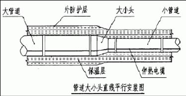 4)直線平行安裝時,伴熱電纜應沿彎頭凸面安裝,并在彎頭的兩端及中間作固定 |