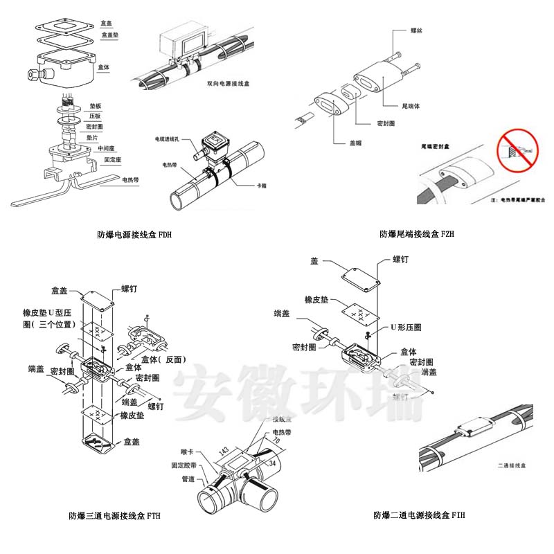 具體電熱帶接線盒可參見我司網站m.cepa.org.cn資料下載-電熱帶安裝手冊