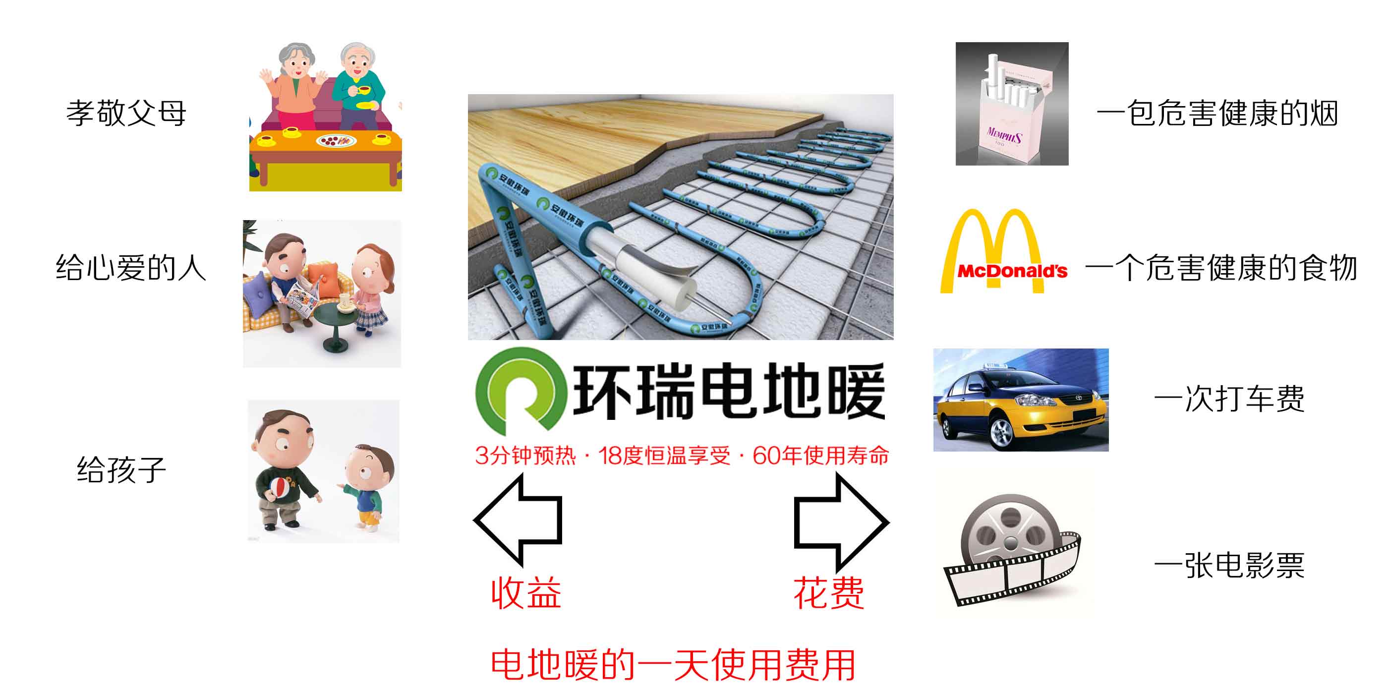 總價格=發熱電纜+施工和輔助材料+溫控,每個規格電纜有標準的價格;施工和輔助材料是按單位面積收費,實際鋪設的面積乘以單價來計算的總價格;溫控是根據型號和數量來確定價格(此排除安裝輔材等其他費用)。所以,首選性價比高的電暖品牌尤為重要。