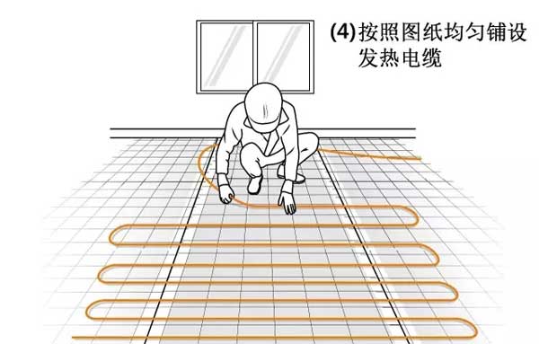 3、按照?qǐng)D紙均勻鋪設(shè)發(fā)熱電纜;